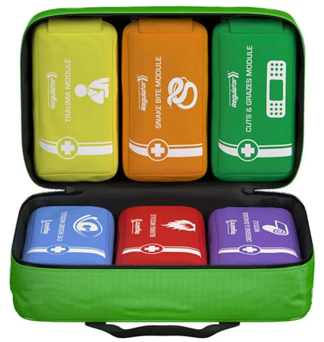 This is a highly visual and clearly labelled soft pack first aid kit with separate modules to ensure fast and effective first aid application with the appropriate injury treatments.